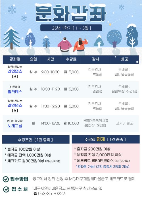 대구제일새마을금고 본점 26년 1학기 문화센터 회원모집